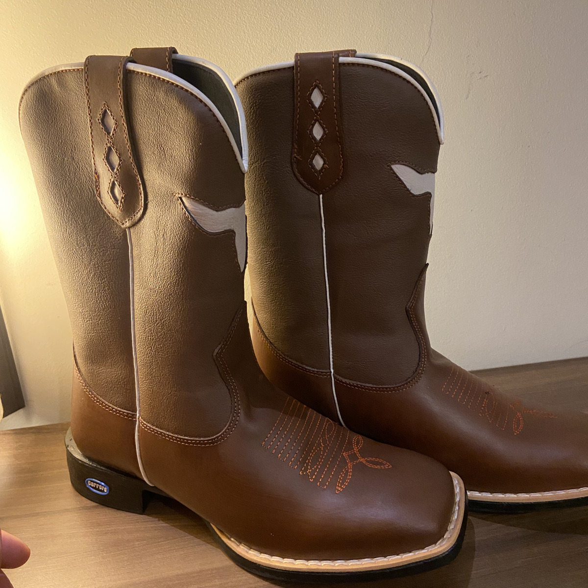 Por se tratar de couro, podem ocorrer variações sutis na tonalidade, o que torna cada par único e exclusivo. Seu bordado detalhado valoriza o design texano, trazendo um visual marcante e cheio de personalidade.